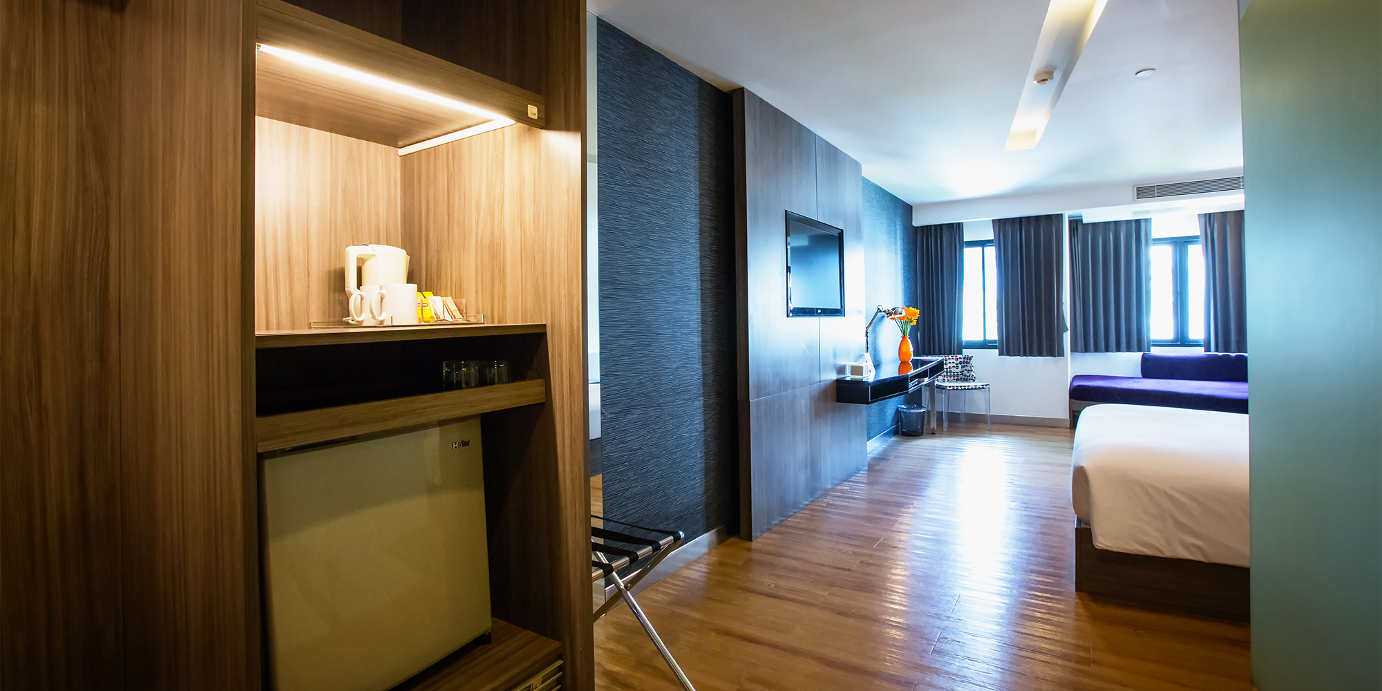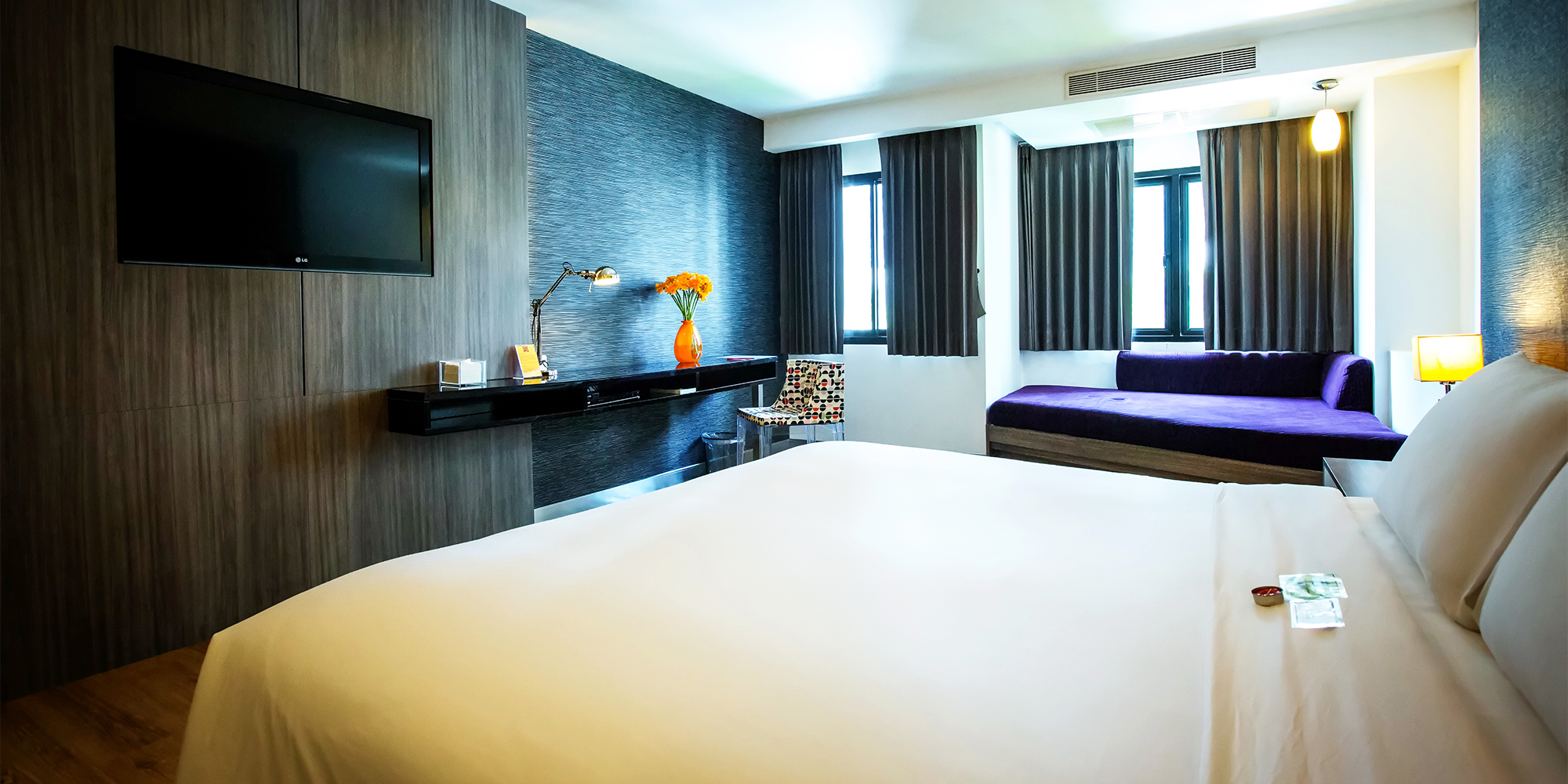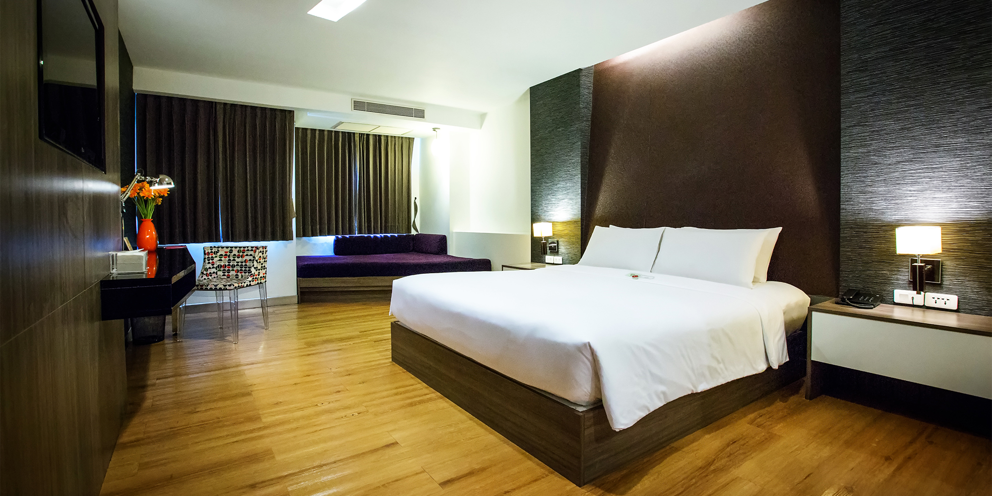 The newly renovated Premier Rooms offer 36 square metres of comfort and are available with either Twin or King beds, with King rooms also featuring a daybed. Each room includes a delicious pillowtop mattress with two types of dreamy pillows, complimentary Wi-Fi access, and full access to our Fitness Facility and swimming pool. Guests can enjoy an in-shower thermostat for customised water temperature, an LCD TV with cable channels, and an individual air-conditioner for personal climate control.
